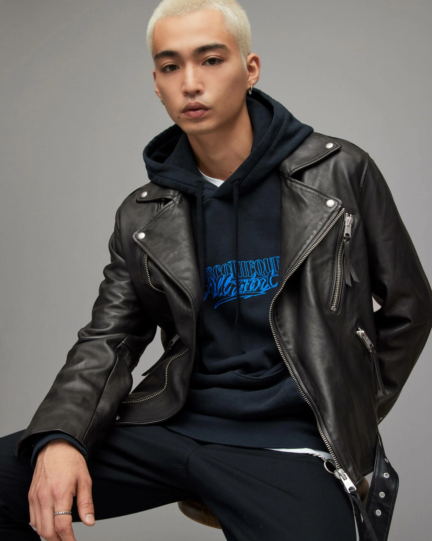 Cropped and boxy. The Allen Biker has a shape we love. Crafted from leather, with a wider collar than usual. Completed with our signature metal hardware – style it out.