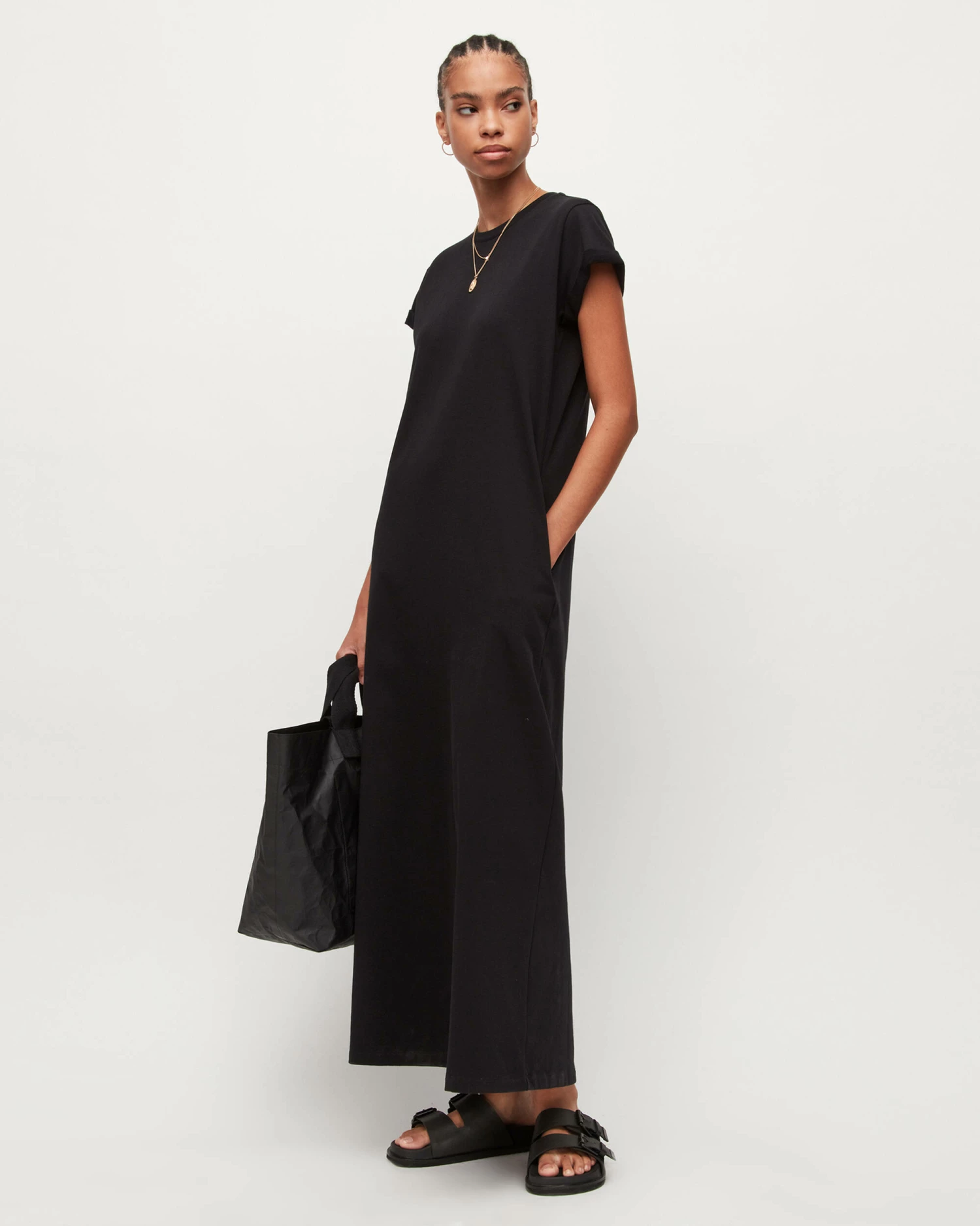 An easy piece. The Anna Maxi Dress has been crafted from soft cotton. Shaped to a slim silhouette with turned-up cuffs and side pockets. Layer up in this new spring essential.