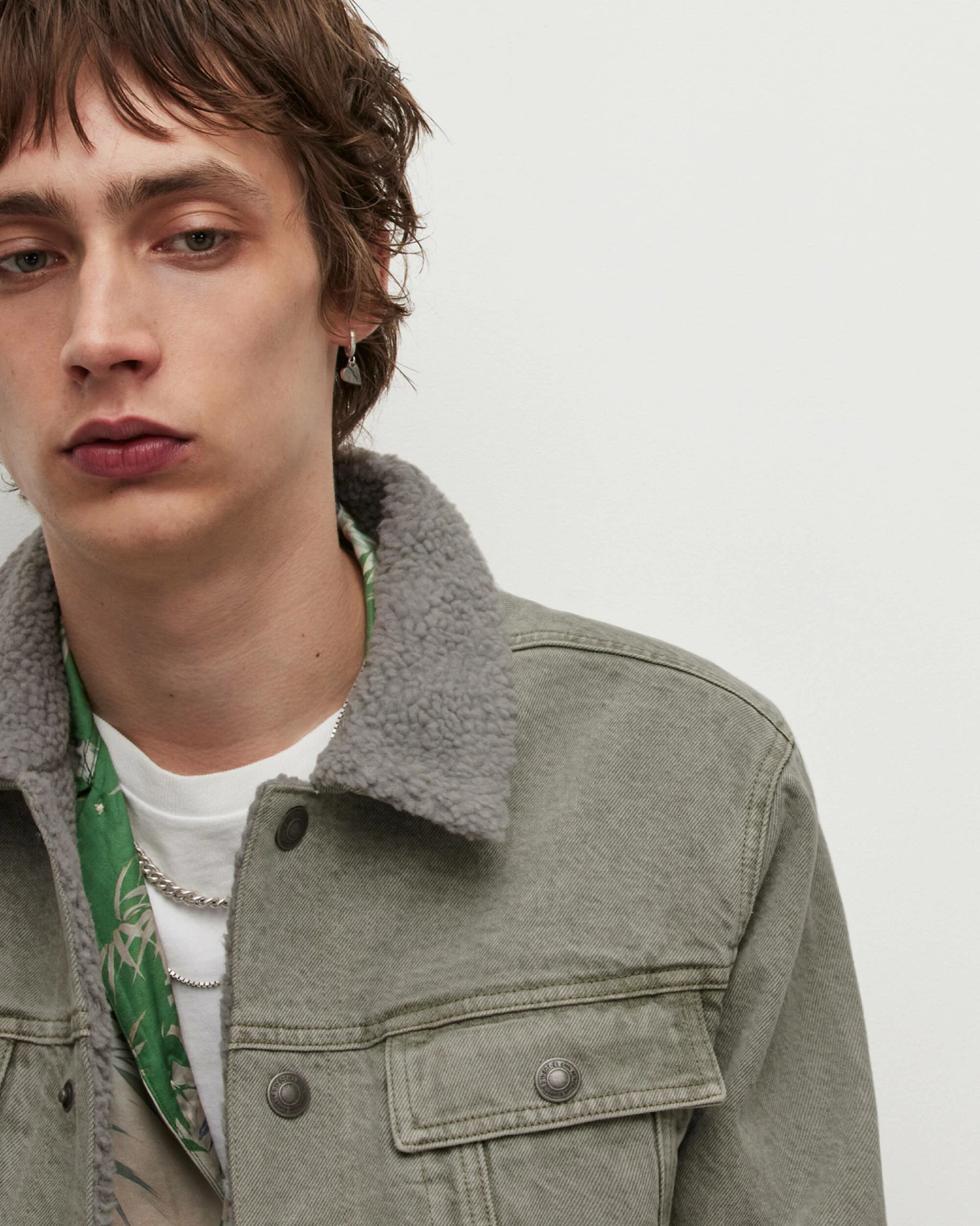 Trucker jackets remain a favourite. This is the Arona Jacket. Made from overdyed heavy cotton twill – it has a vintage look. Shaped to a relaxed fit with a faux sherpa lining for extra warmth.