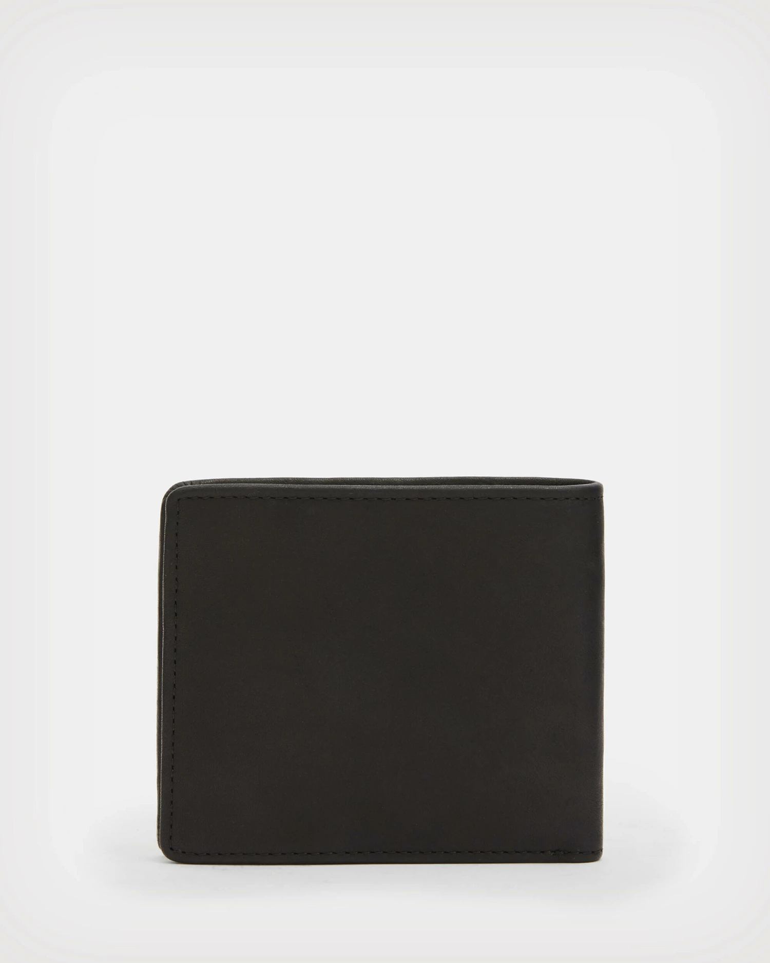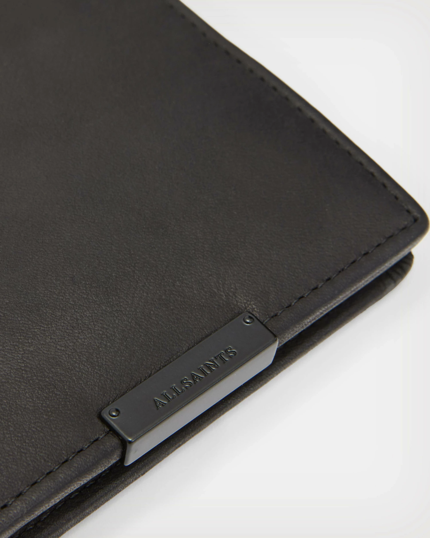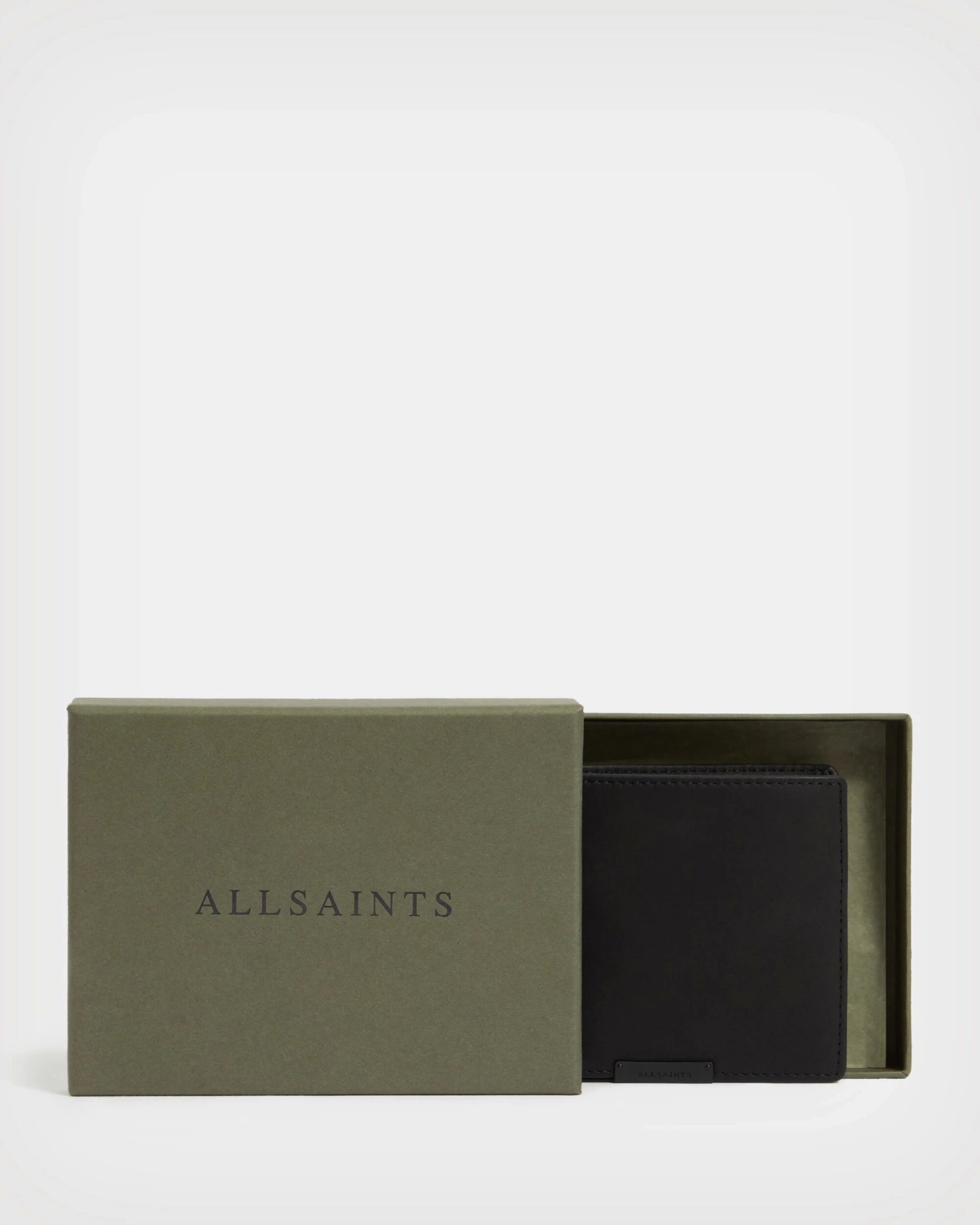 A classic bi-fold wallet, perfect for everyday use. Crafted in khaki leather with a single black metal AllSaints panel sitting on the edge.