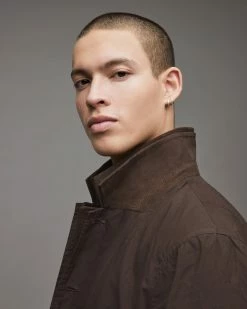 - Keyhole button detailing on the lapel