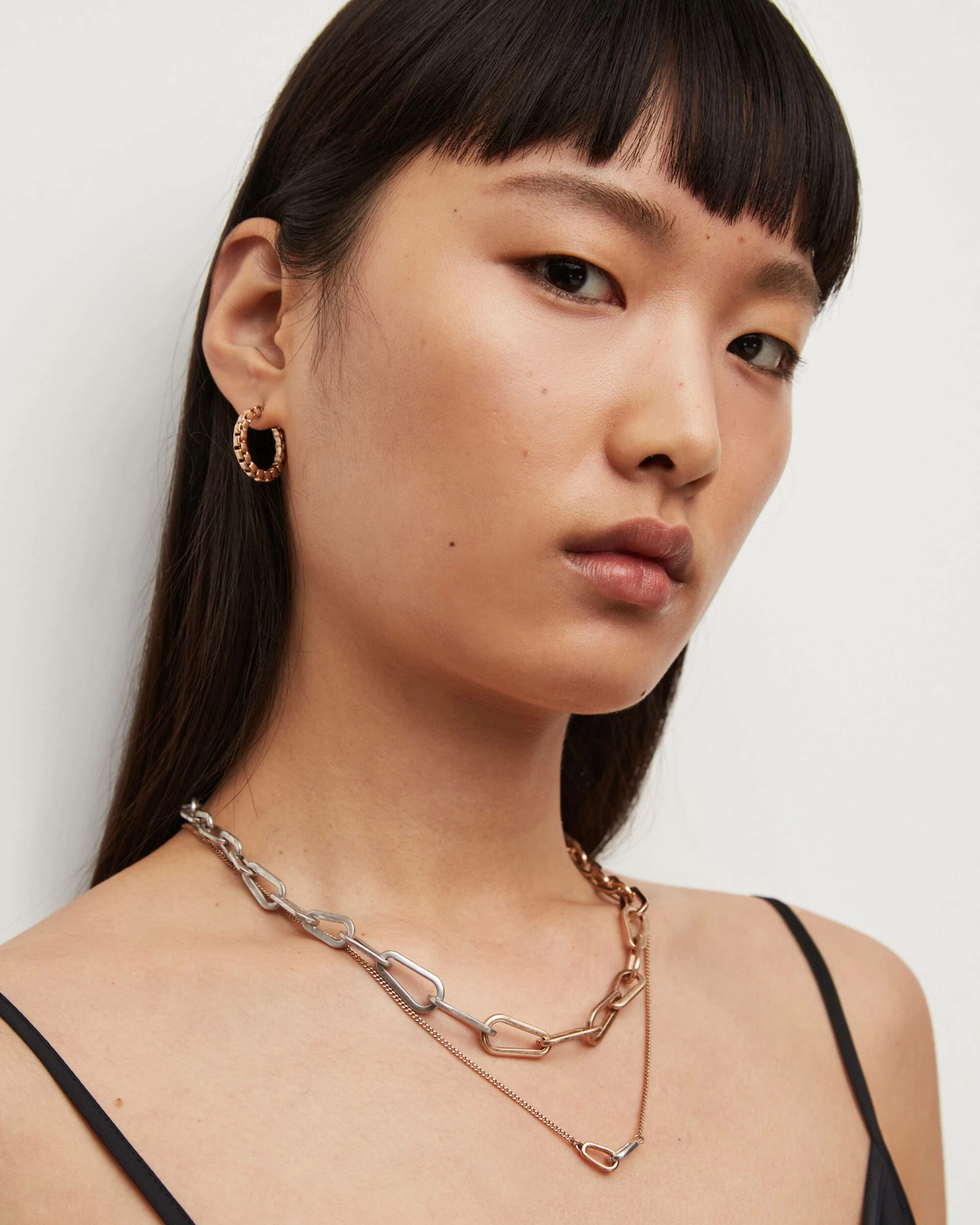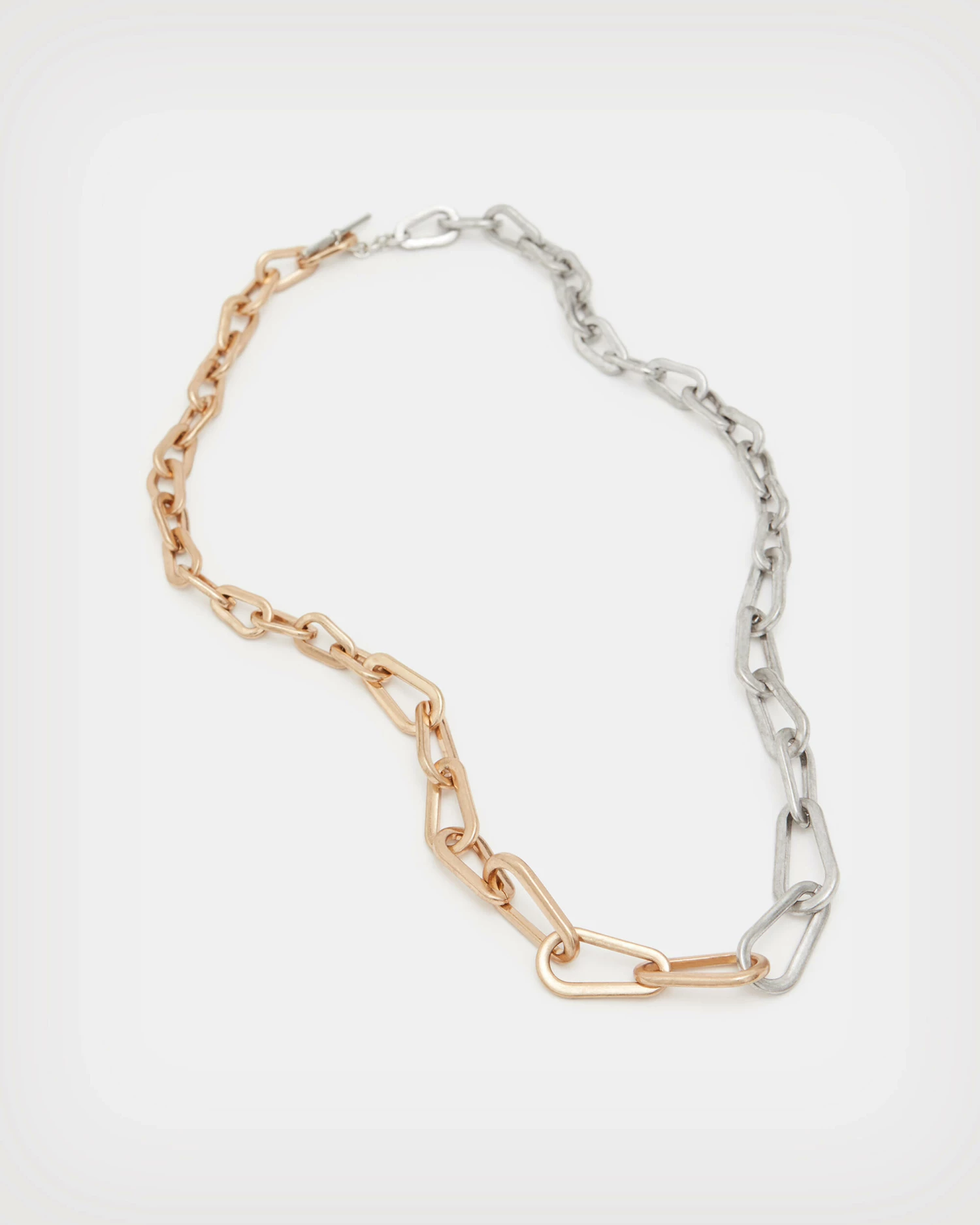 It’s time to clash. The Carrie Necklace features chunky carabiner links. Silver meets gold, it’s a statement.