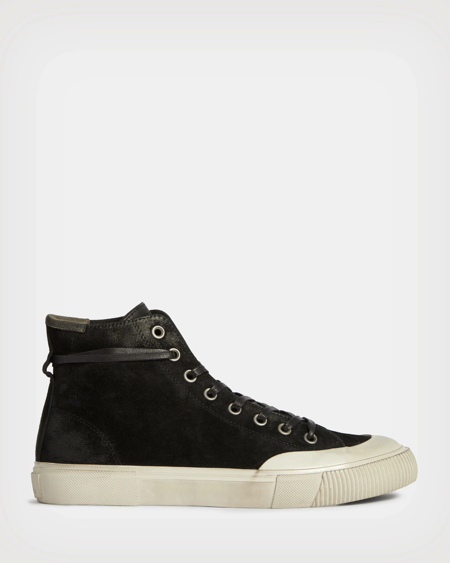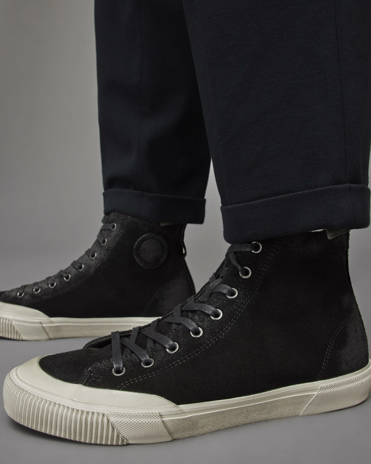 Worn-in aesthetic. The Dumont is crafted to a hightop silhouette with darker patches on the sole for a vintage finish. Tie the laces around the ankle for an AllSaints twist.