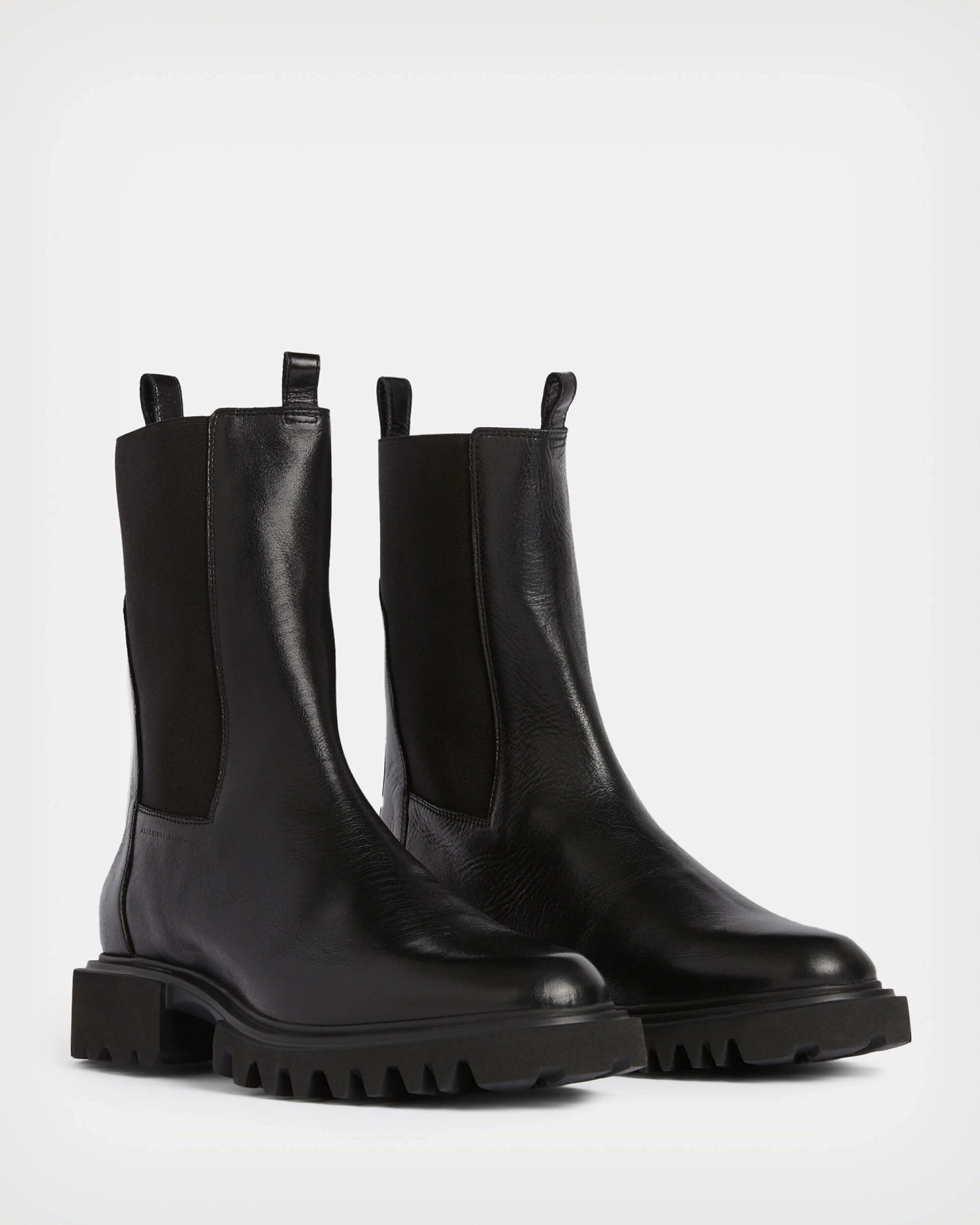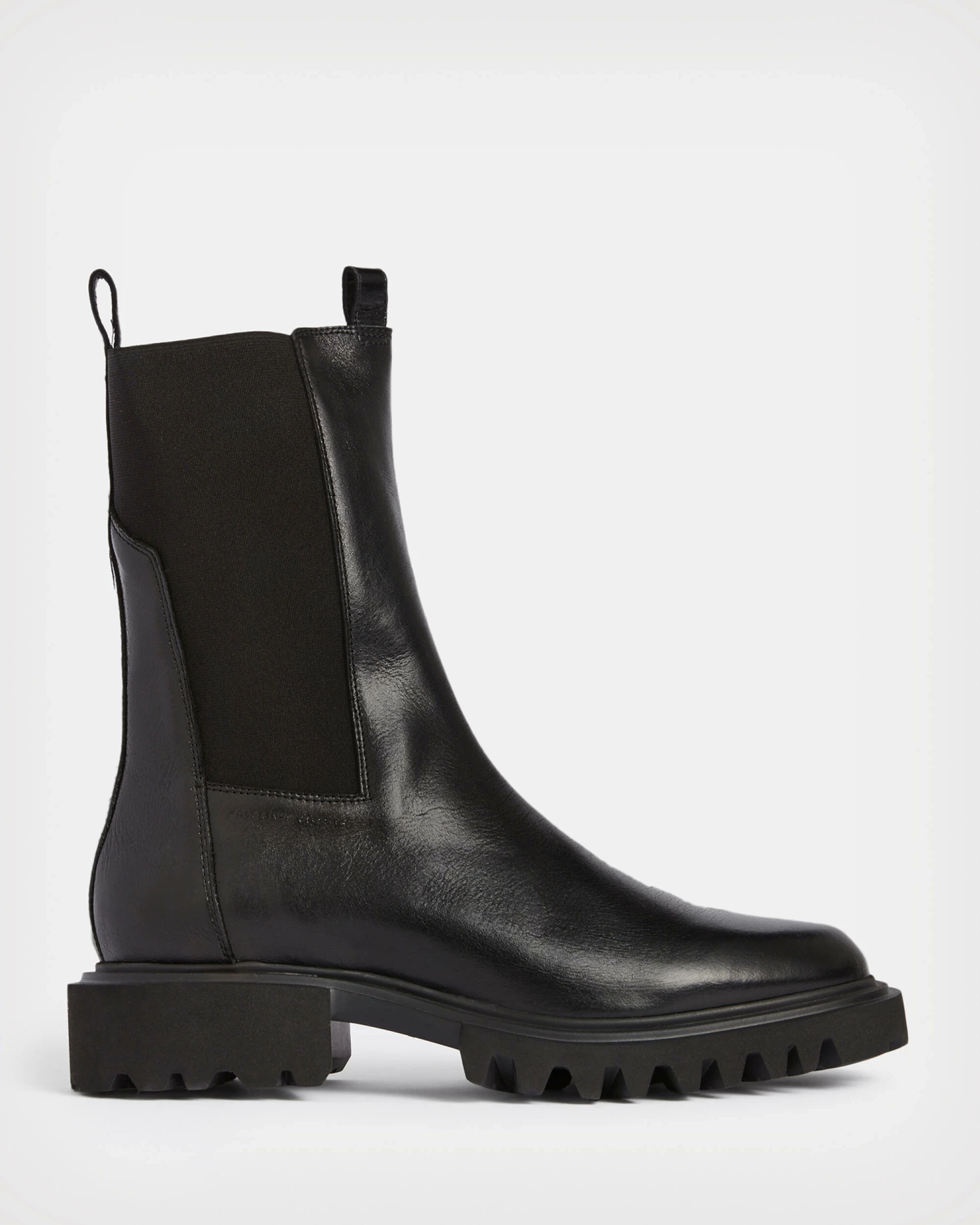 Chelsea boots with a difference. These are the Hallie Boots. Classic silhouette on a chunky cleated sole. Elasticated, they slip on with ease.