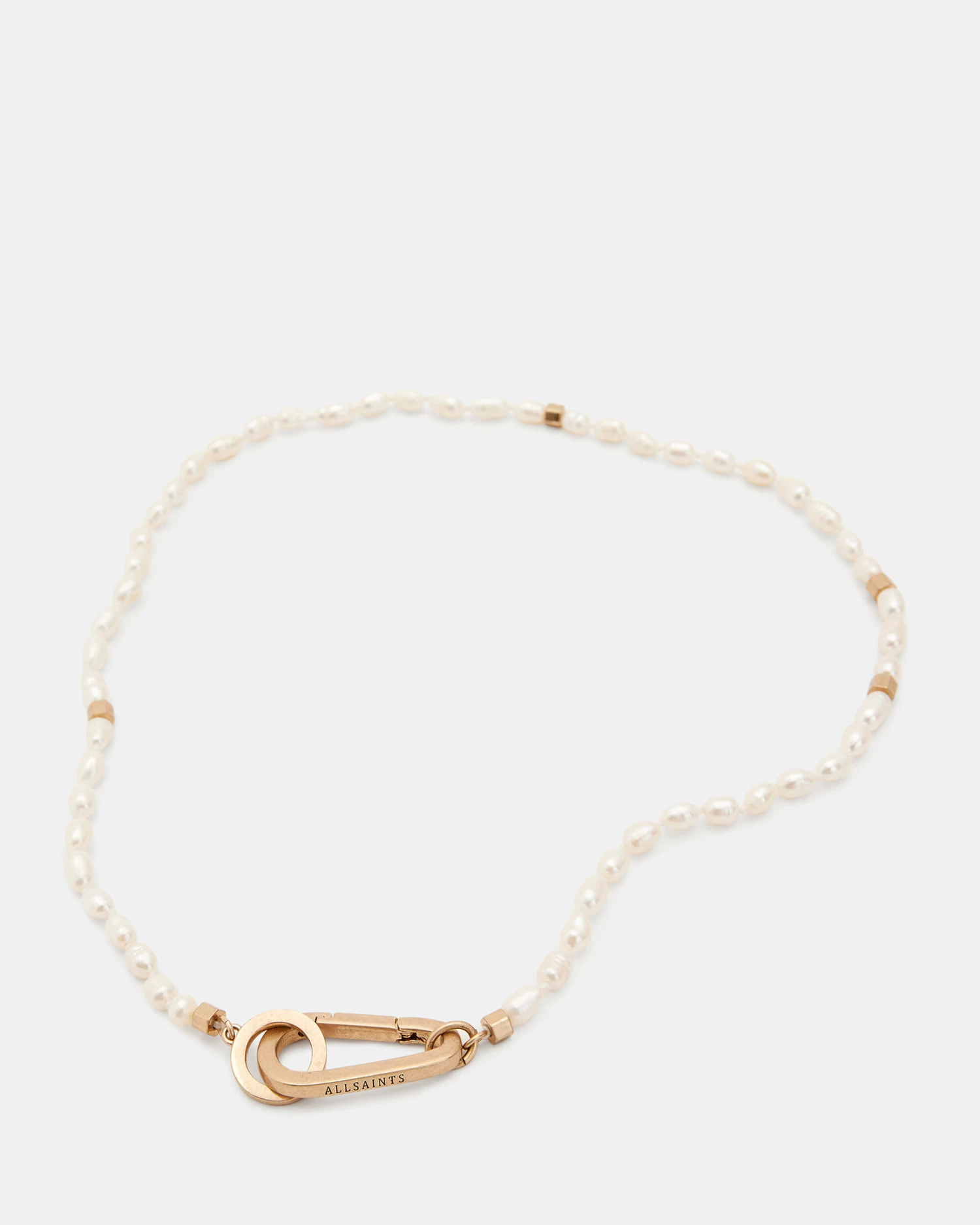 A little bit of glamour with an AllSaints twist. The Haven Pearl Necklace features delicate pearls all the way around. Detailed with a gold-tone carabiner clasp – a modern touch.