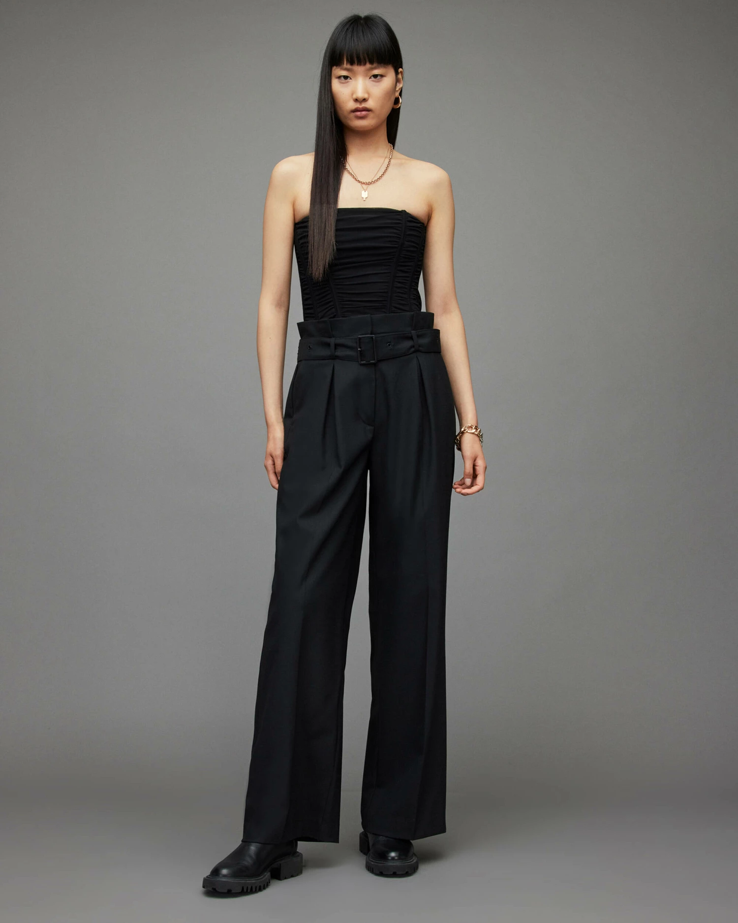 Get fitted with the Kym Corset. The mesh fabric is boned for a structured look. With a square neckline and smocked back, it’s easy.