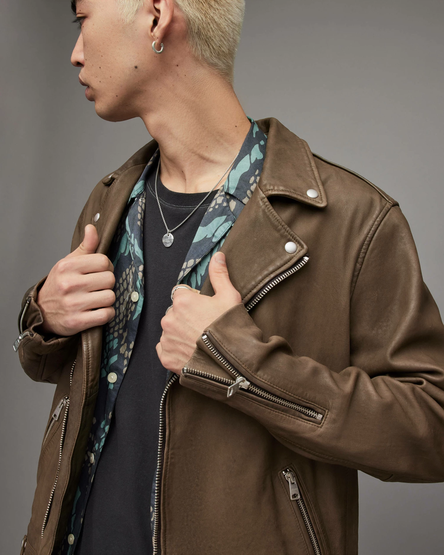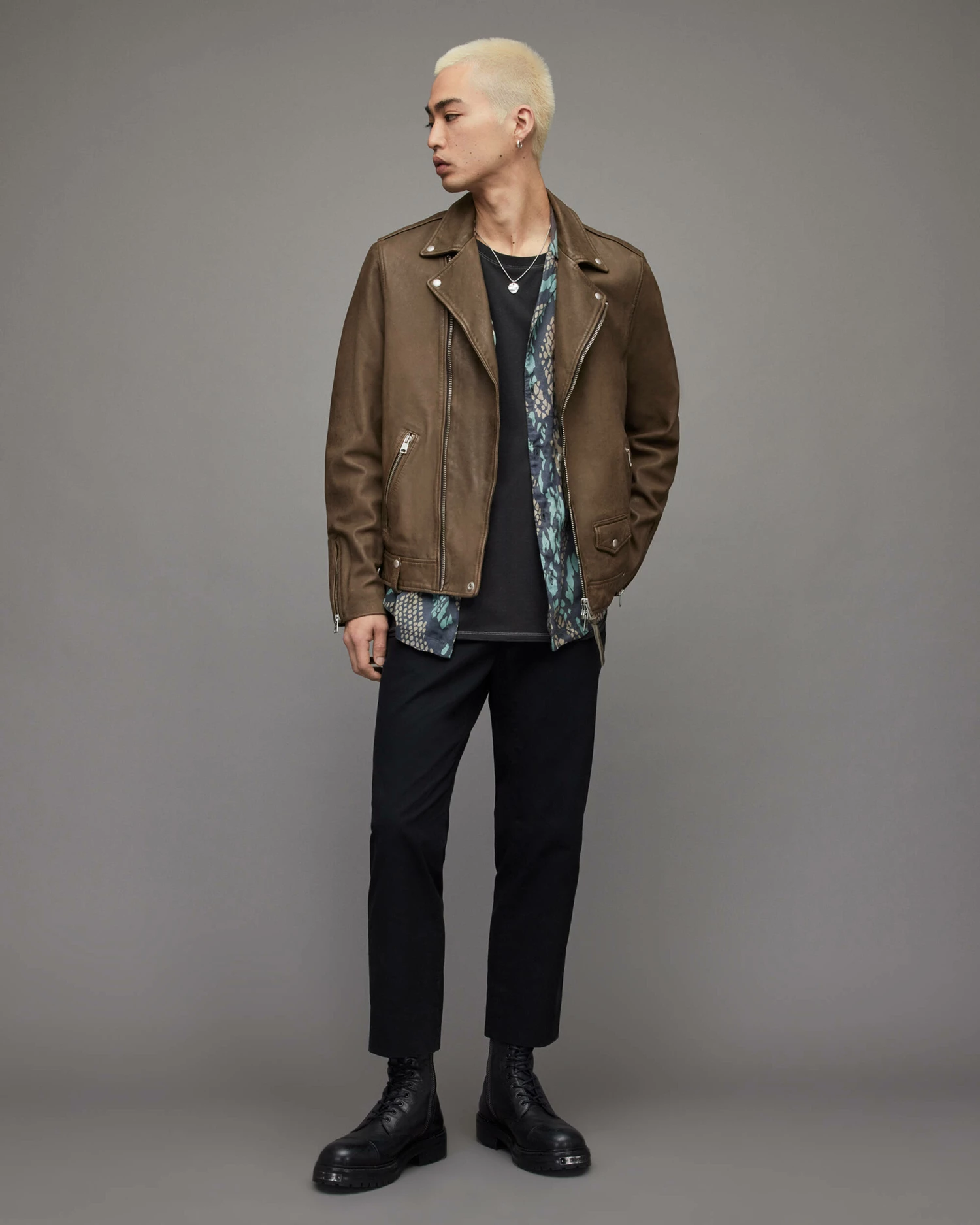 The Milo Biker. Made from soft lamb leather, with biker jacket details. It’s got a ticket pocket, hem loops and silver metal zips – just add the motorbike.