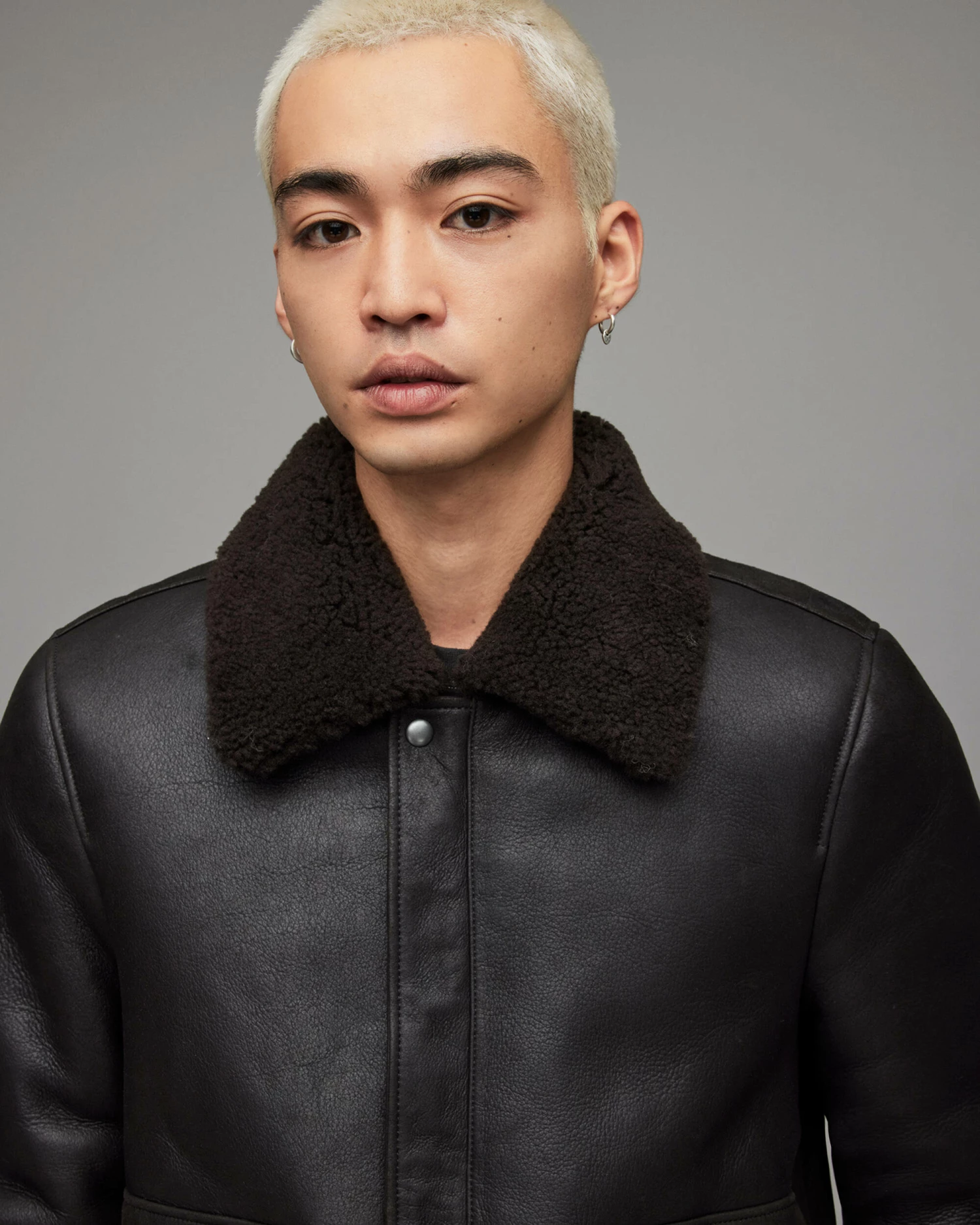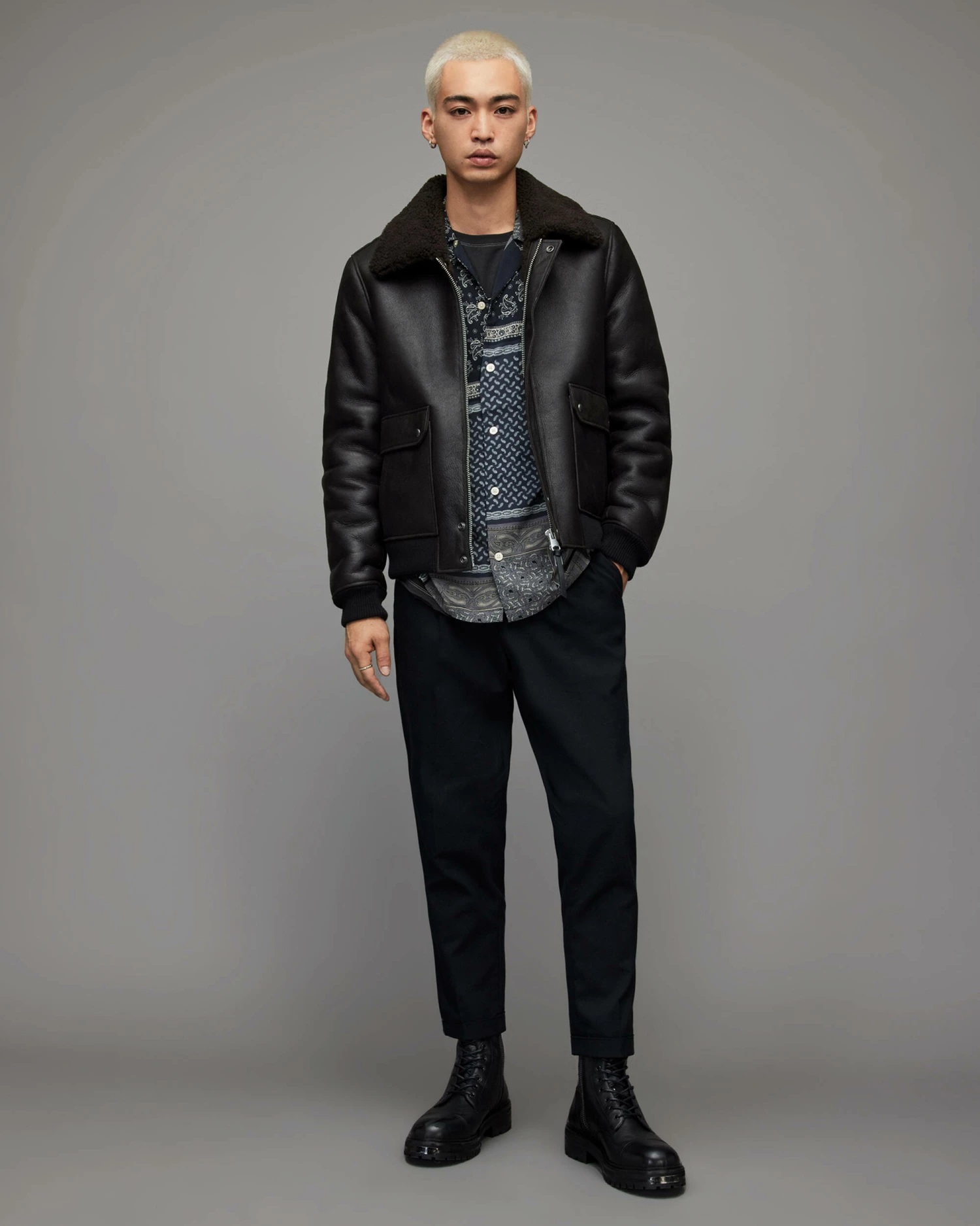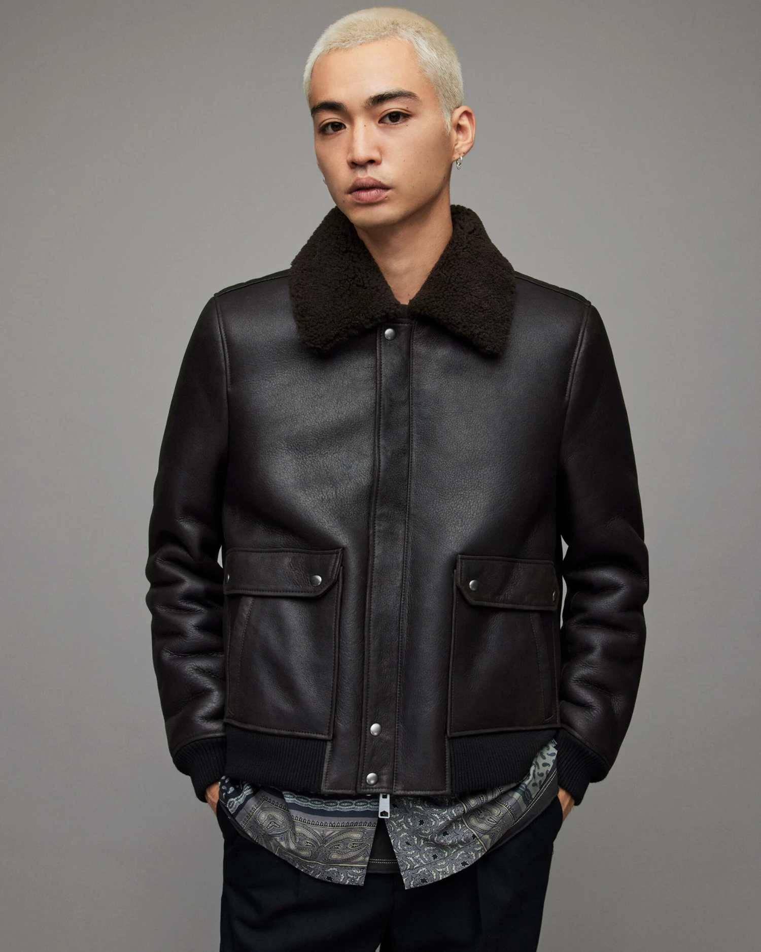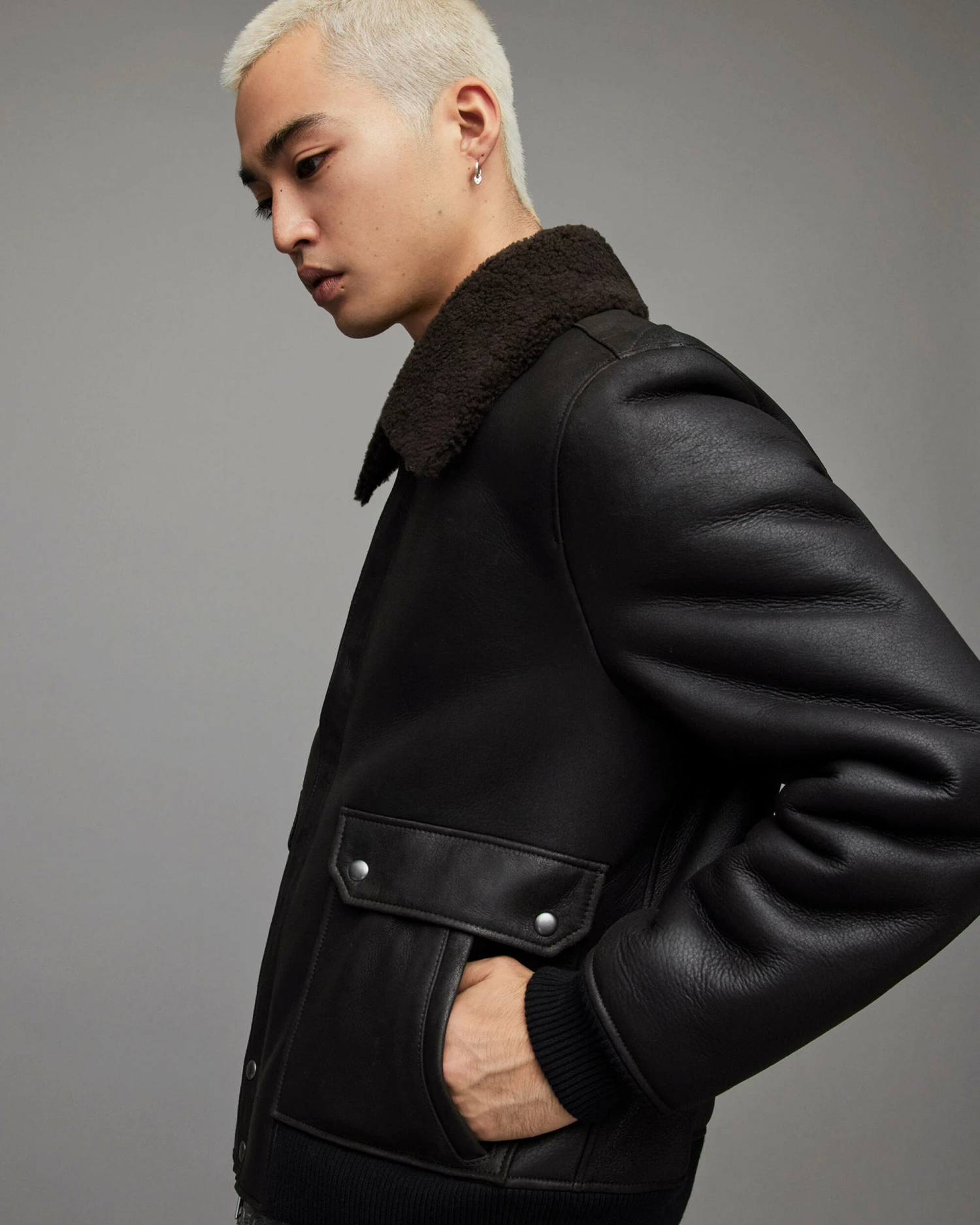 Inspired by vintage aviator jackets – this is the Nolan. The merino collar adds warmth to the classic silhouette. It’s completed with multiple pockets for an authentic look.