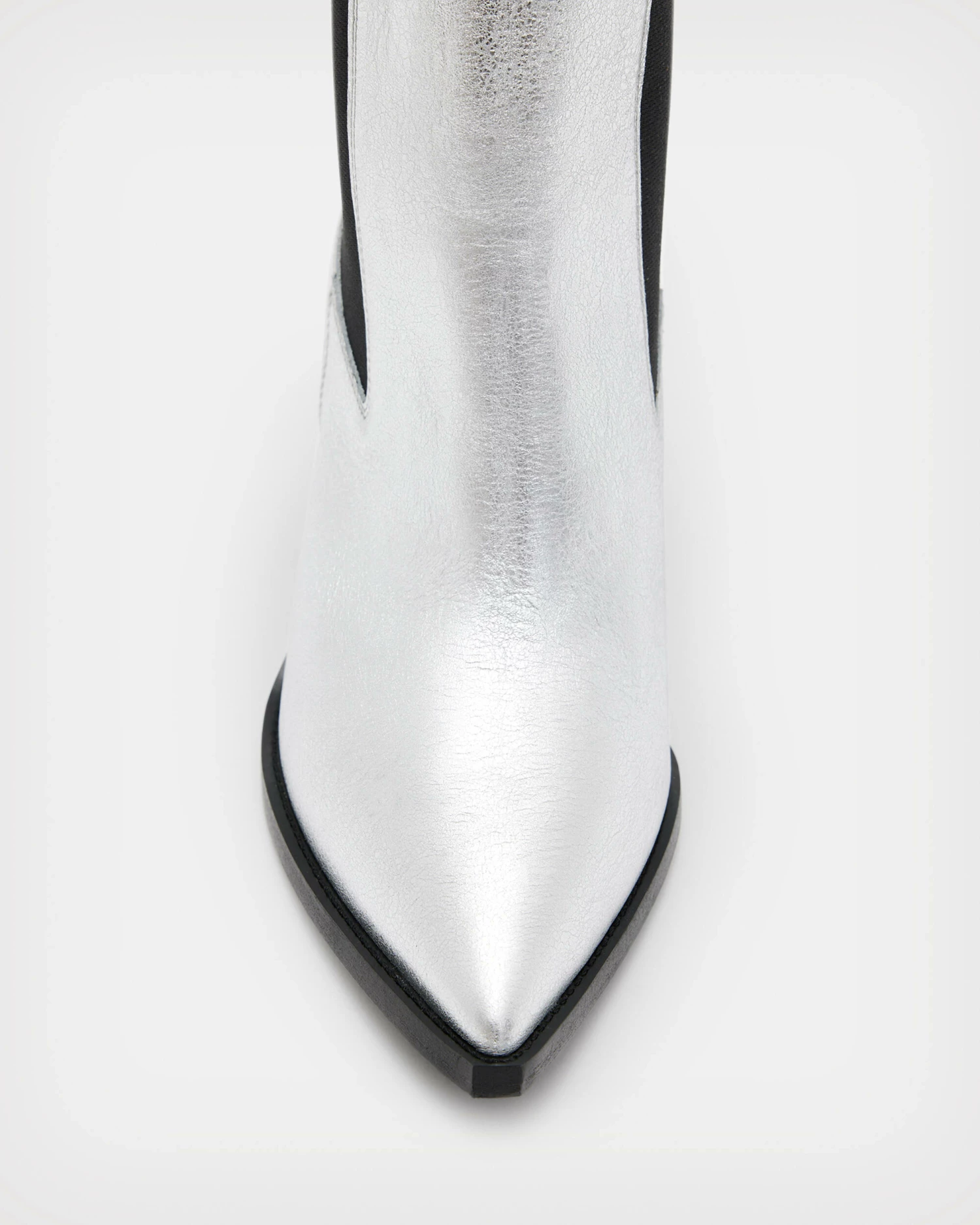 Sophisticated shapes with a classic feel. Meet the Ria Boots. Crafted from metallic leather, the pointed silhouette is completed with a chunky heel and elastic panel for ease. Dress them up or down – that’s up to you.