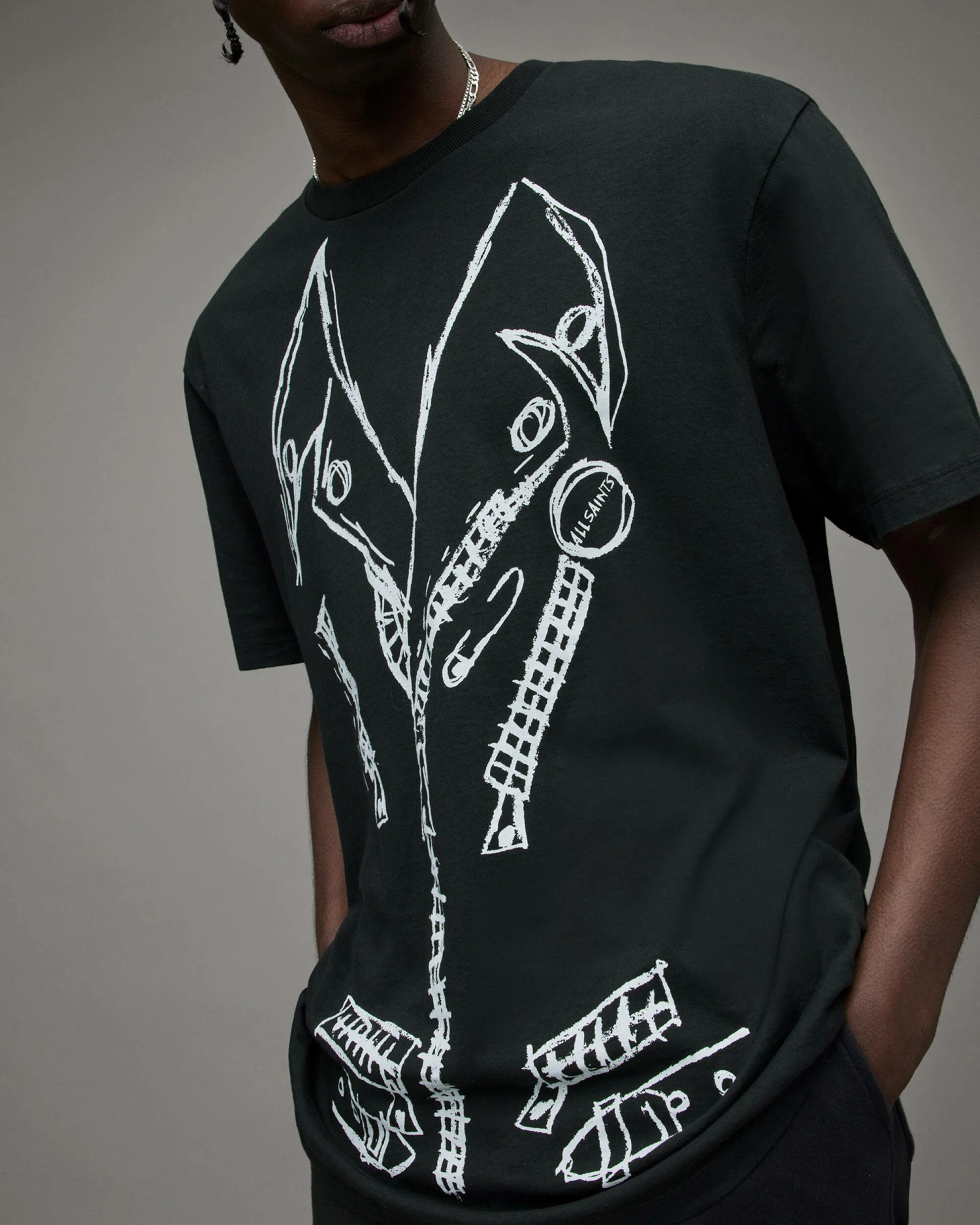 We like our bikers so much we draw one on this tee. The Rocker T-Shirt. It features this hand-drawn graphic on a relaxed organic cotton base. It’s very AllSaints.