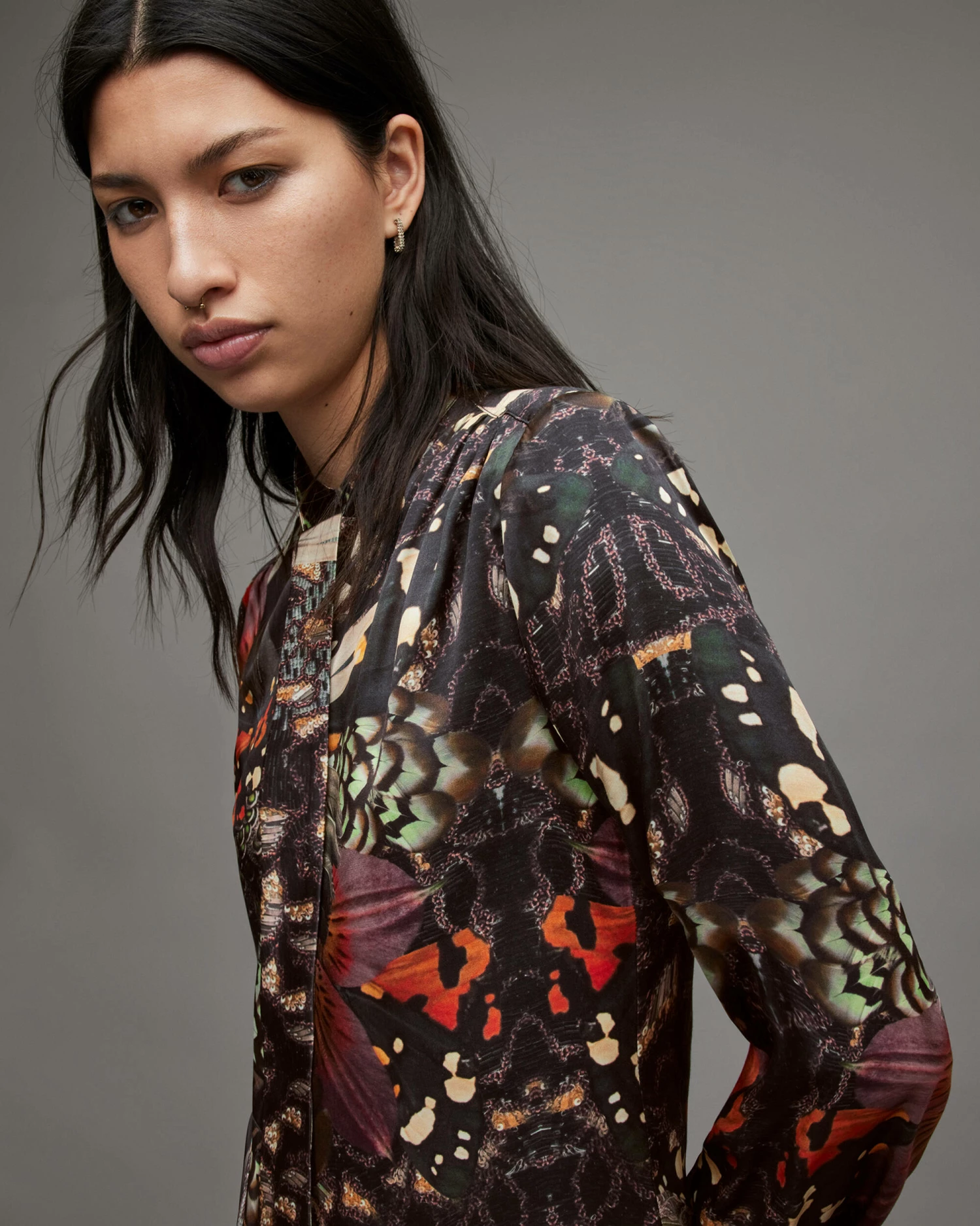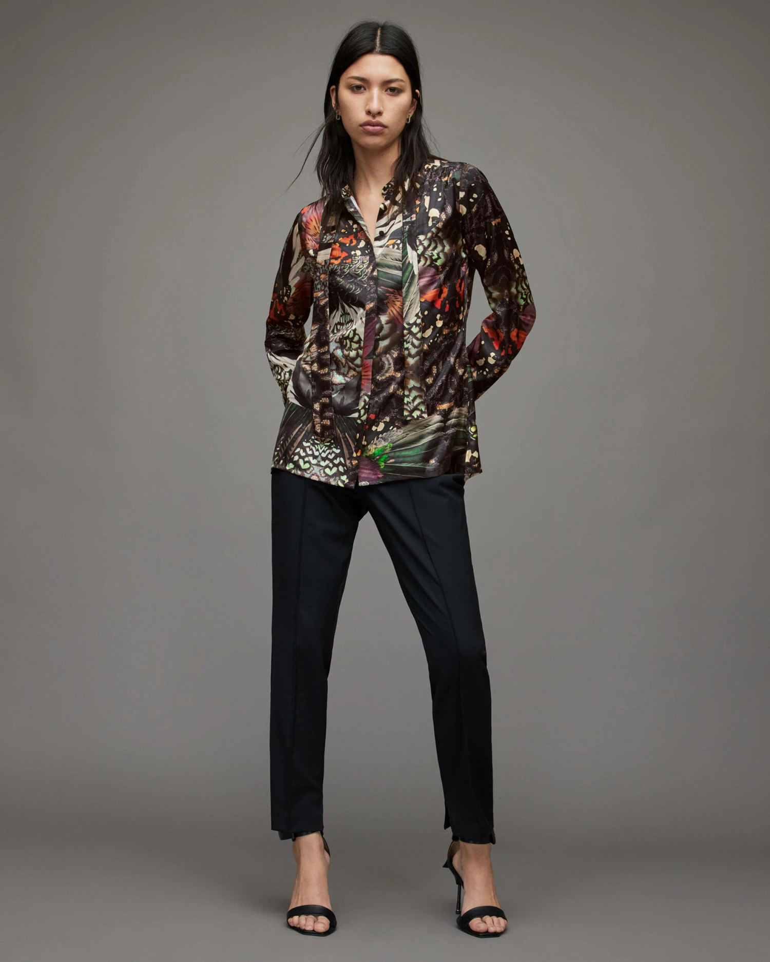 Don’t get tied down. The Toni Iris Shirt features a removable shirt tie. Crafted from a conscious silk blend fabric, it’s shaped to a slim fit with a simplified collar.