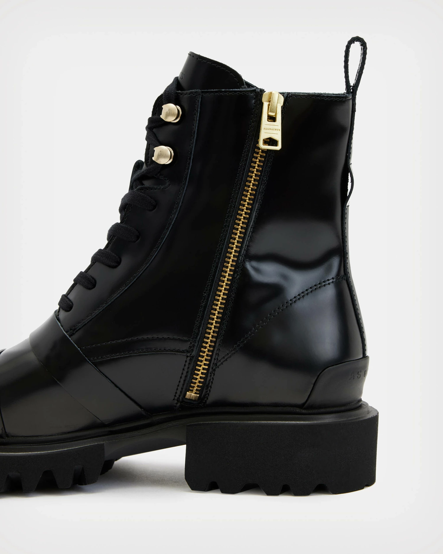 Buckle up. These are the Tori Boots. Crafted from leather with crossover laces and side zip closure. The sole is slightly chunky and the boots are detailed with our signature metal hardware – that’s the finishing touch.