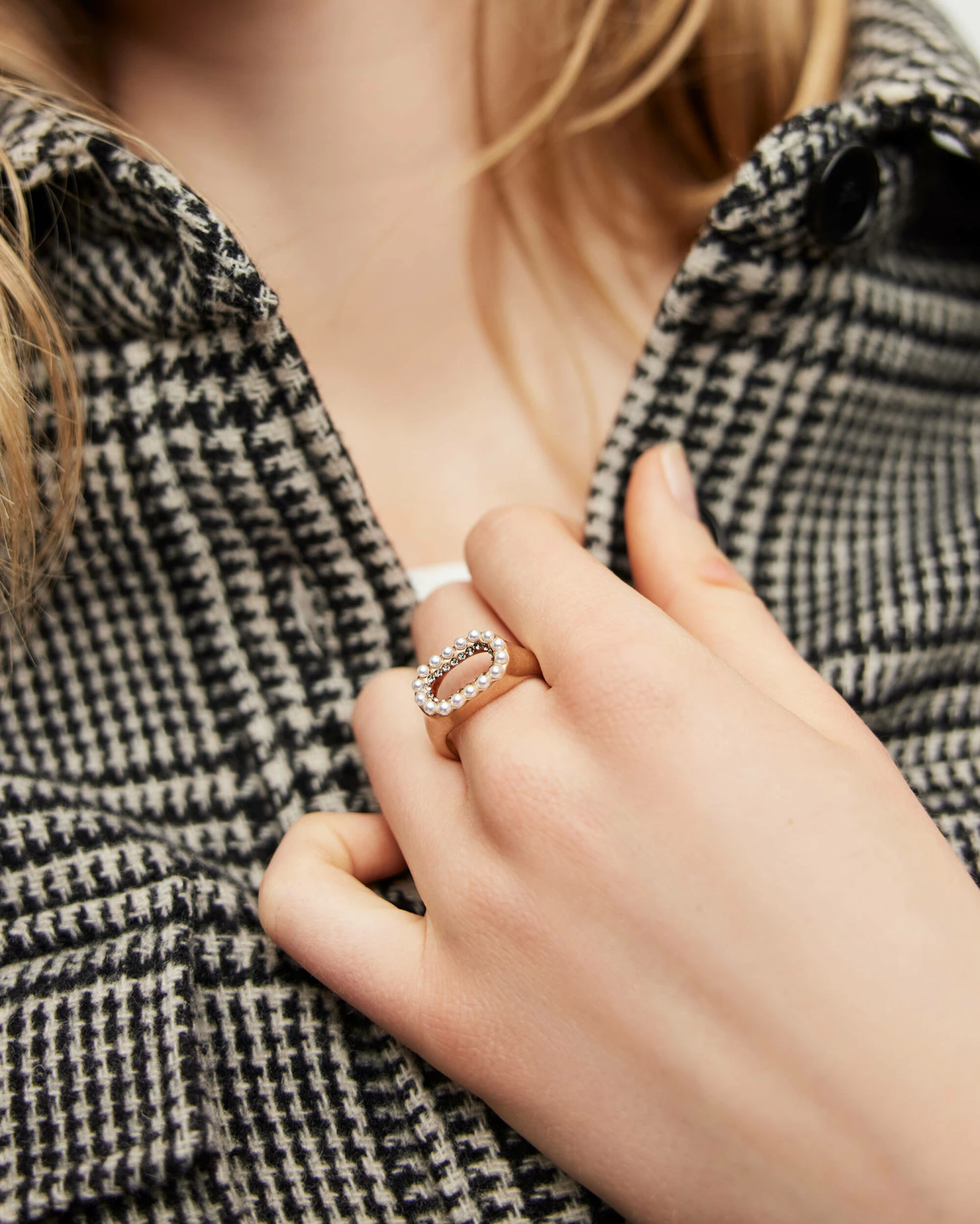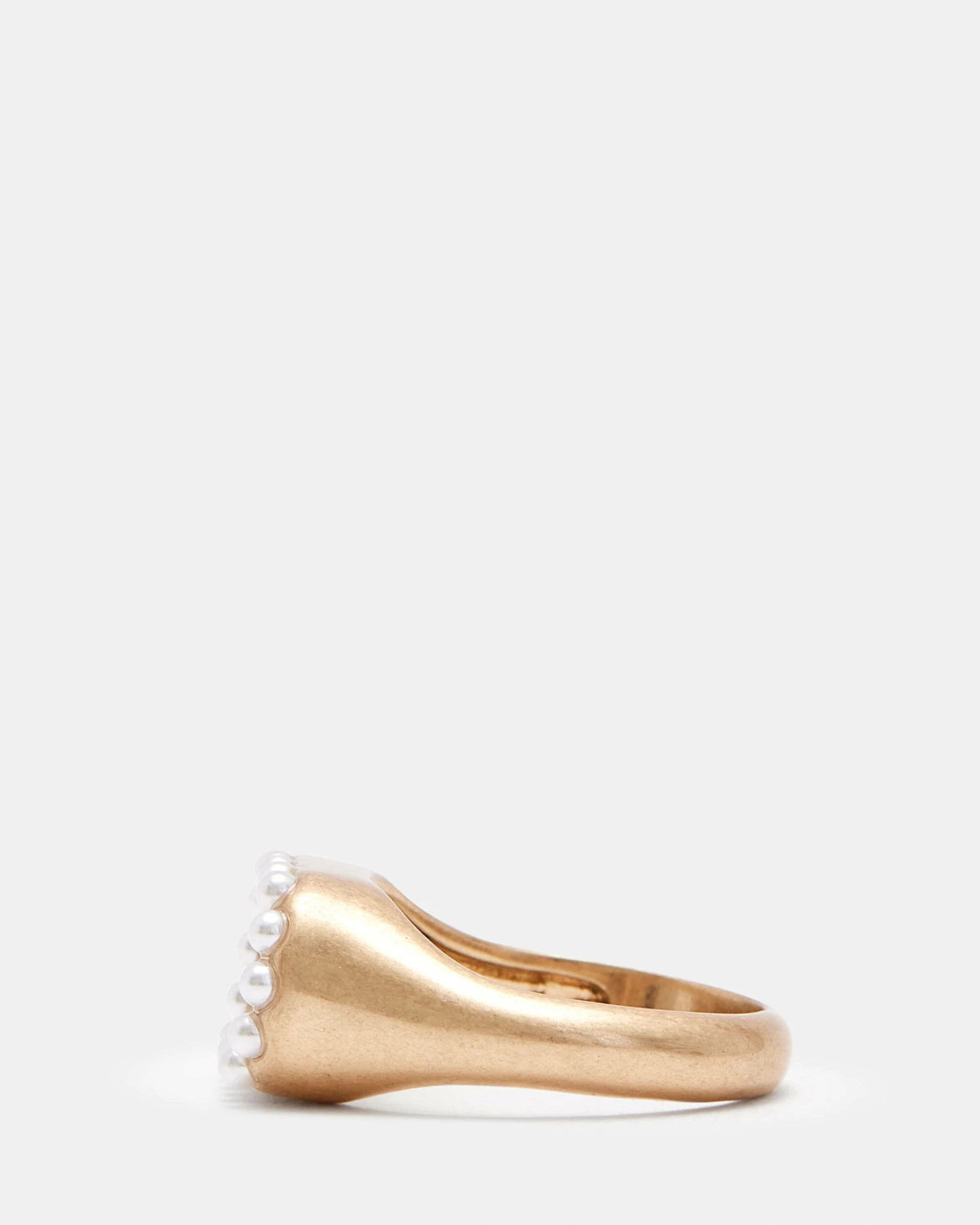 Pearls, they just add something. This gold-tone ring features a round pattern. Make it a part of your collection.